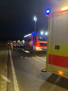 Die Fahrerin kam glücklicherweise mit leichten Verletzungen davon. Der Einsatz war gegen 20:30 Uhr für uns beendet. Die Staatsstraße war über die komplette Einsatzzeit voll gesperrt.